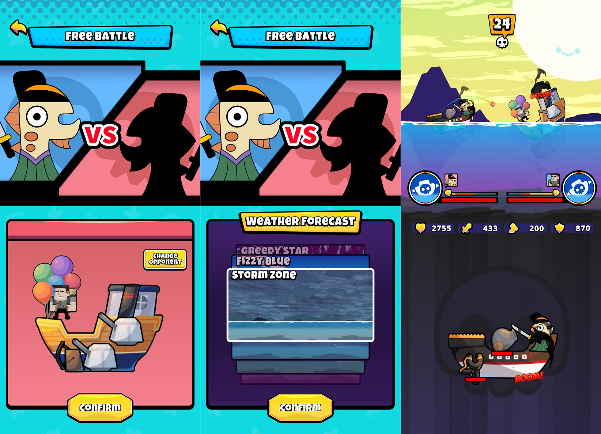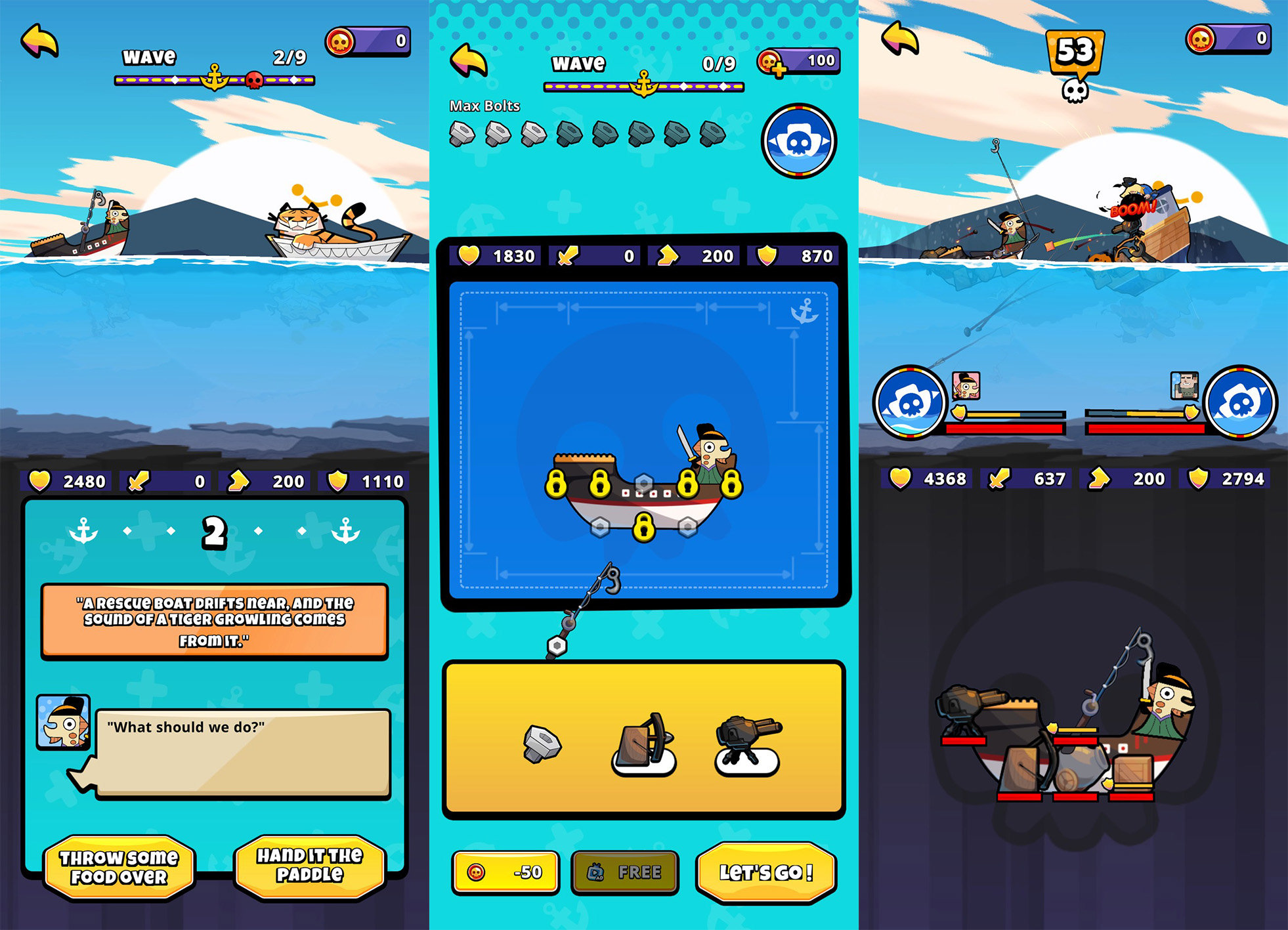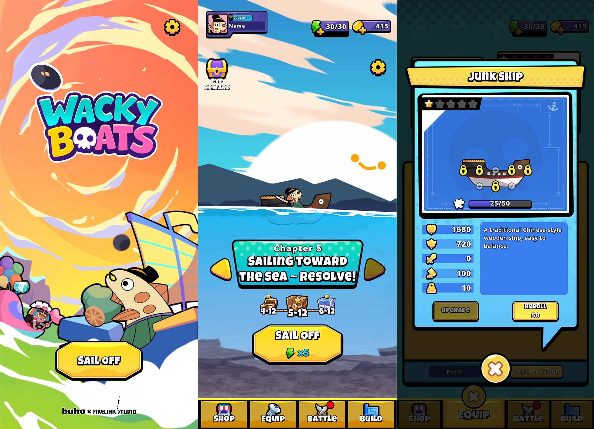 自由拼船、選擇武器、調整重心,打造你的專屬怪船。